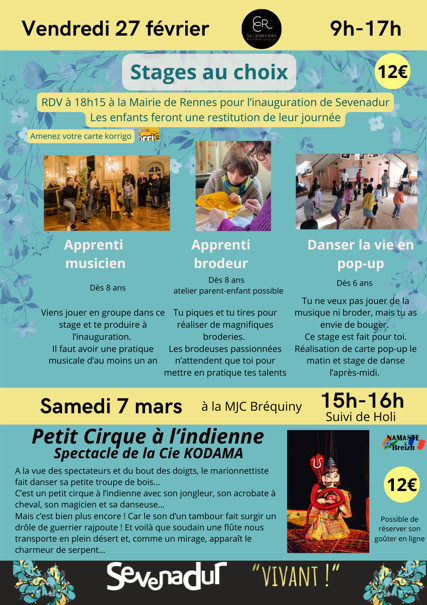 Voici le programme de Sevenadur enfant du mercredi 25 février au vendredi 27 février.