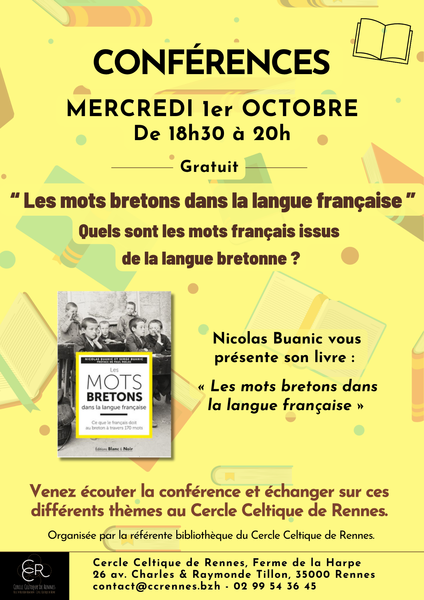 Mercredi 5 novembre 2025 de 18h30 à 20h, venez assister à une contée conférencée organisée par la référente de la bibliothèque du Cercle Celtique de Rennes. Contes, légendes et « notes de Folklore » "Contée-conférencée"