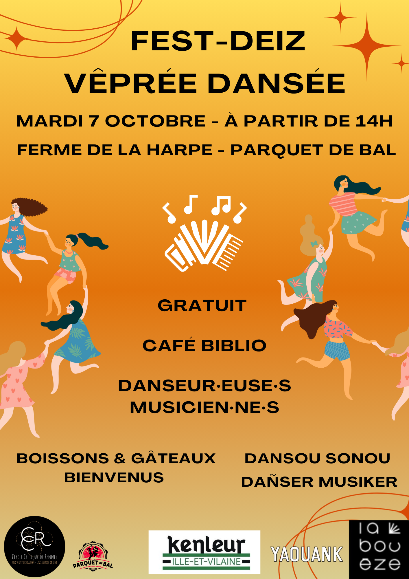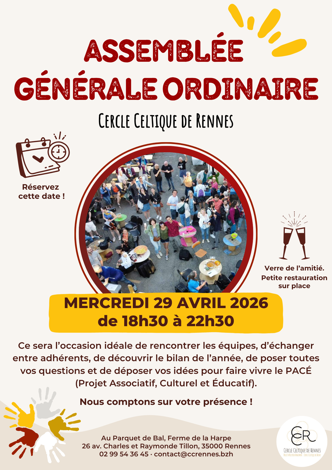 Retrouvez-nous samedi 6 septembre 2025 au Cercle Celtique de Rennes, à la Ferme de la Harpe, pour les Portes Ouvertes de l’association. Plusieurs personnes de l’association seront présentes de 10h à 17h pour vous accueillir, répondre à vos questions, vous présenter le projet du Cercle et même vous initier à certaines activités si vous le souhaitez.