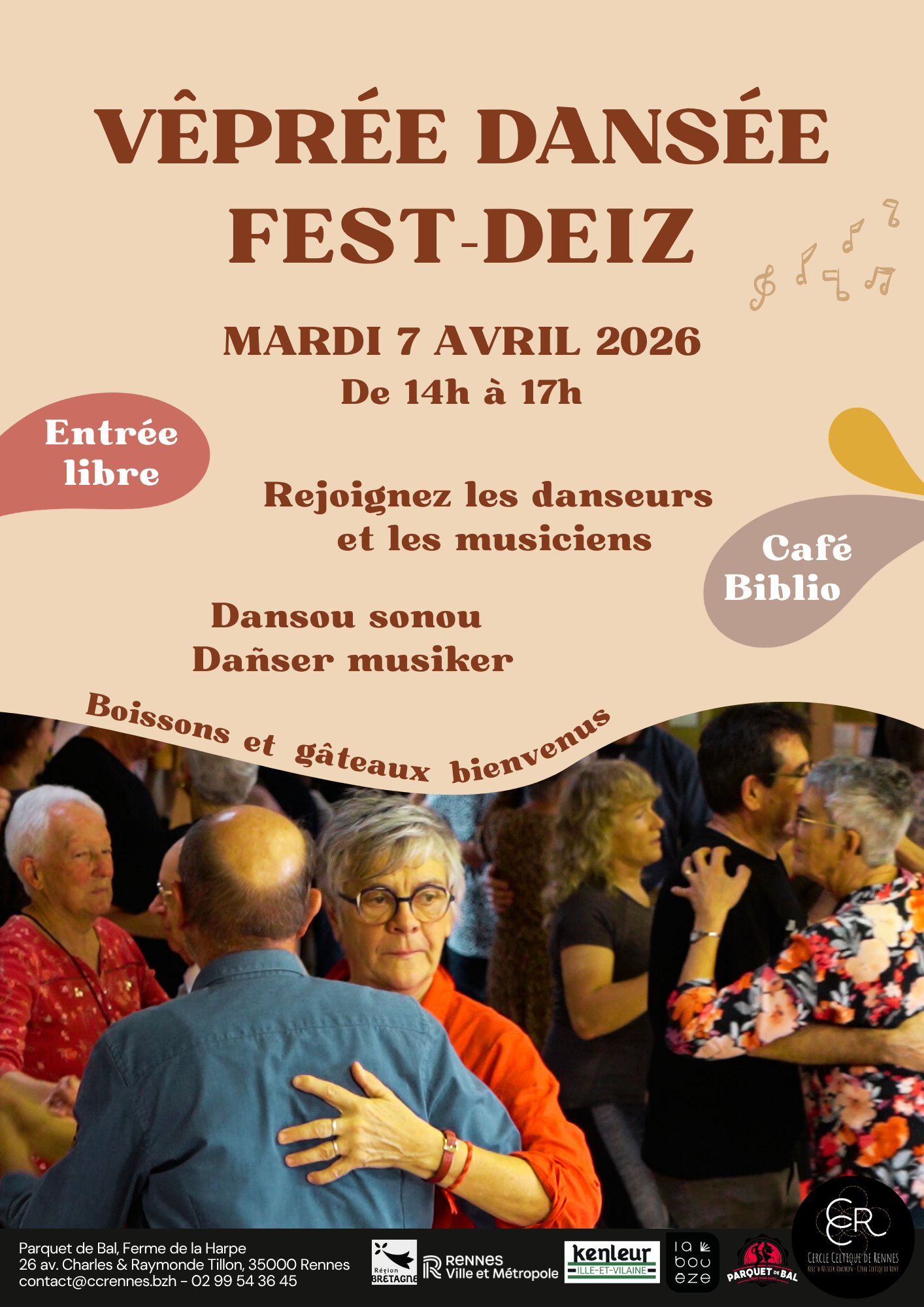 Chaque premier mardi du mois à partir de 14h entre octobre et juin, venez danser à la Vêprée du Cercle Celtique de Rennes. La scène est également ouverte à tout·e musicien·ne ou chanteur·euse désireux·euse de