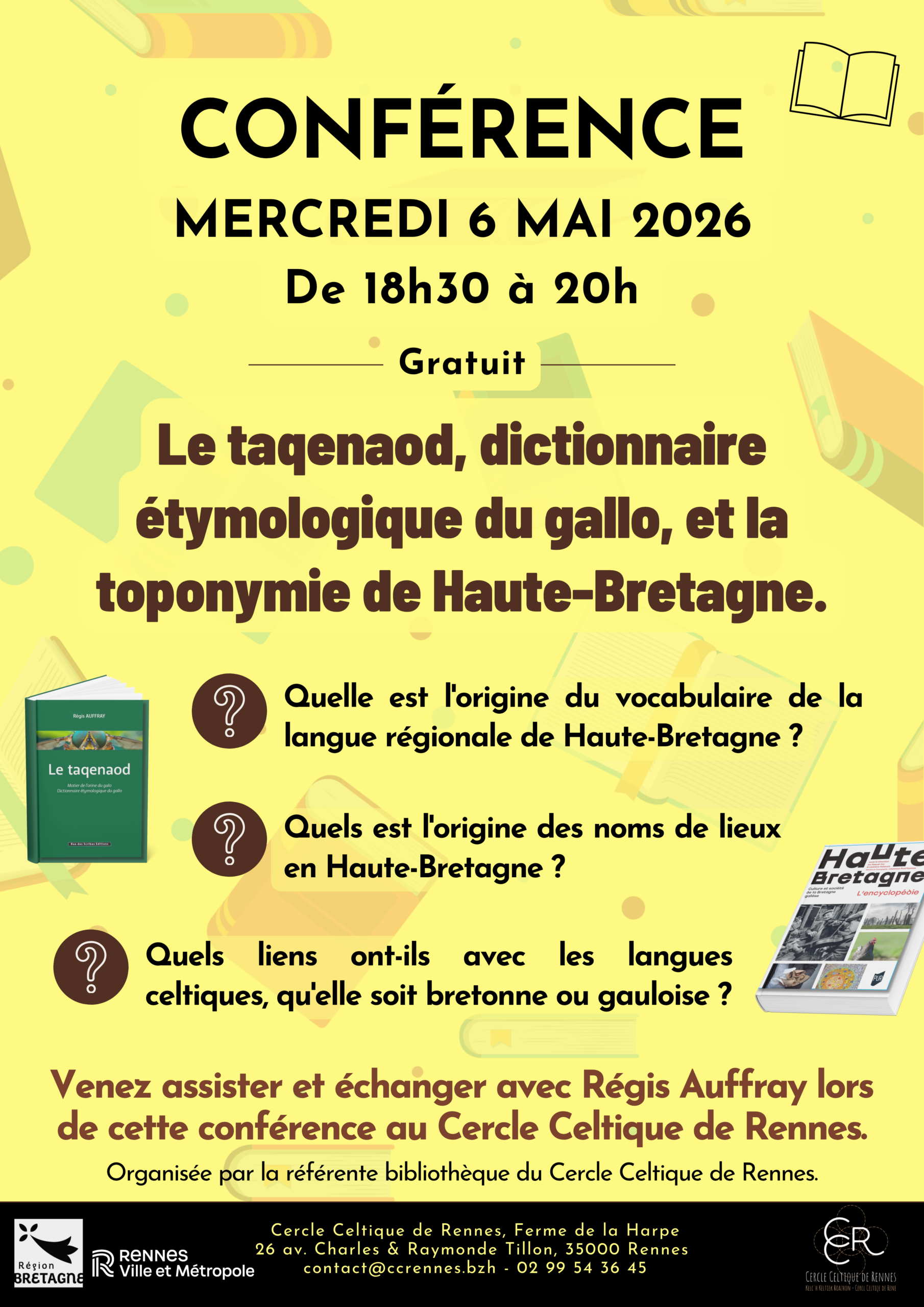 Mercredi 1er avril 2026 de 18h30 à 20h, venez assister à une conférence organisée par la référente de la bibliothèque du Cercle Celtique de Rennes et animée par Dominique Degano et Stéphane Desmars. "Les bretons