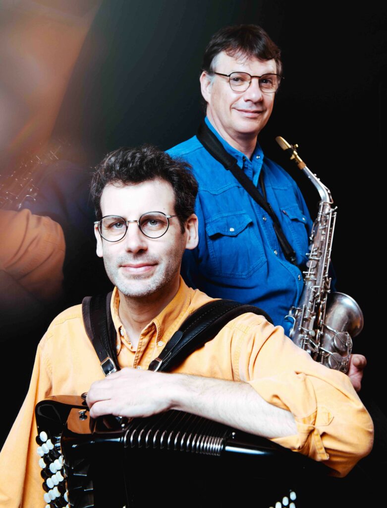 Le duo Fagon/Hellard présente en toute liberté son nouveau répertoire de danses de Basse et Haute Bretagne, voire d’un peu ailleurs. Les diverses influences des deux musiciens colorent airs traditionnels ou compositions pour servir une musique riche et spontanée, parsemée d’improvisation et de fantaisie. La pulsation entêtante des rondes alterne avec la poésie envoûtante de quelque valse ou mazurka dans une énergie communicative qui irradie l’assemblée dans un plaisir partagé.