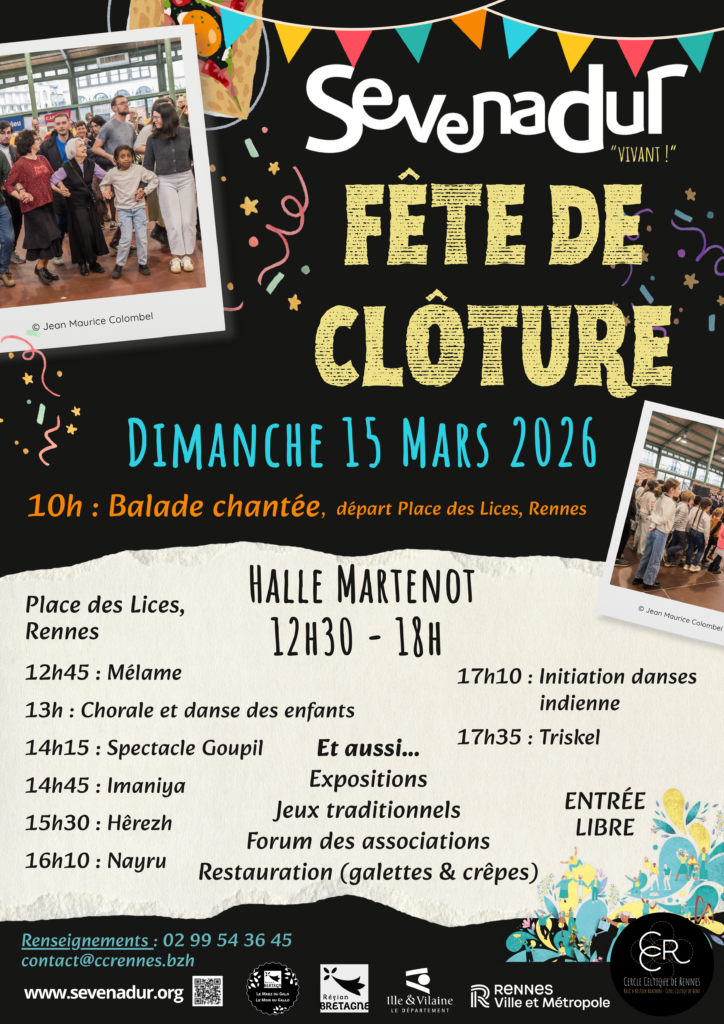Pour finir en beauté la 27ème édition du festival Sevenadur, le Cercle Celtique de Rennes et ses partenaires vous donnent rendez-vous à la Halle Martenot le dimanche 15 mars 2026 à partir de 12h30.
