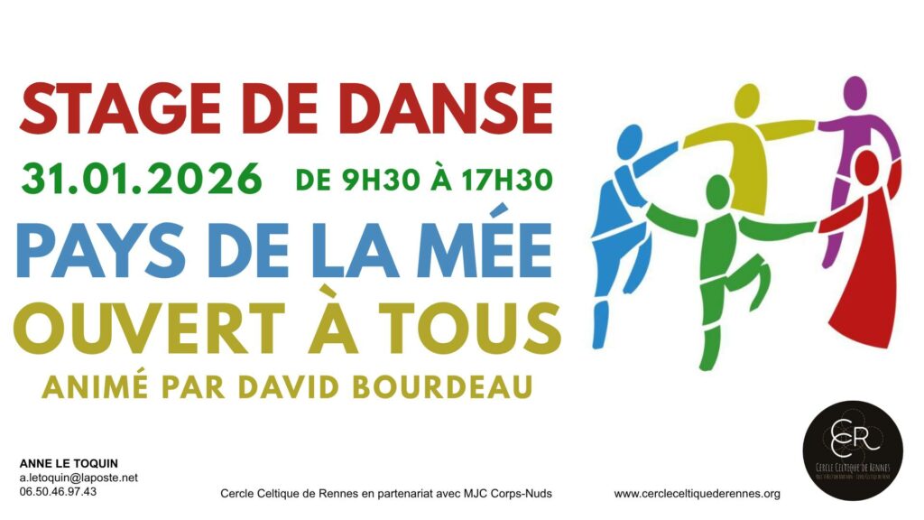 Le Cercle Celtique de Rennes, en collaboration avec la Rouette MJC de Corps-Nuds, organise un stage de danse le samedi 31 janvier 2026.