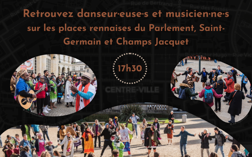 Retrouvez danseurs·euses et musiciens·nessur des places rennaises… Les musiques bretonnes et folks animeront les places du Parlement, Saint-Germain, Hoche et vous invitent à entrer dans la ronde. La musique vous guidera ensuite jusqu’à la place